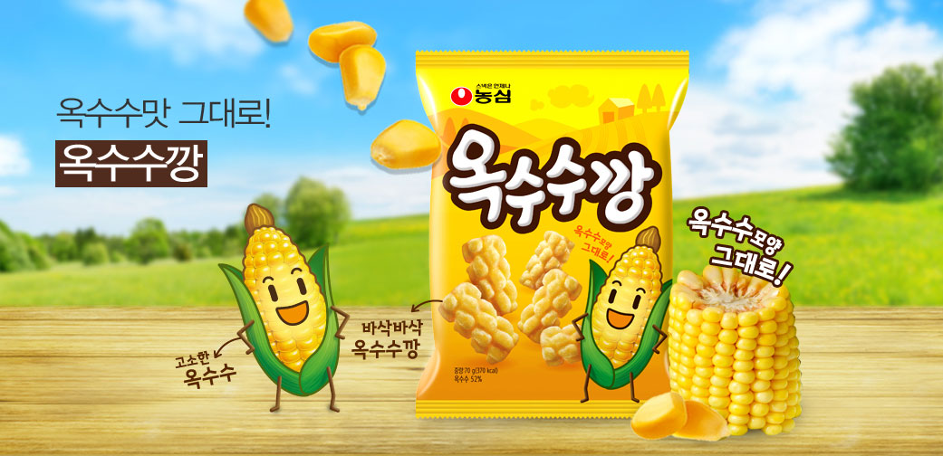 새우깡(えびカン)!감자깡(じゃがいもカン)!양파깡(玉ねぎカン)!고구마깡(さつまいもカン)!옥수수깡(とうもろこしカン)! なんと옥수수깡は47年ぶりの新作だったのですな~。